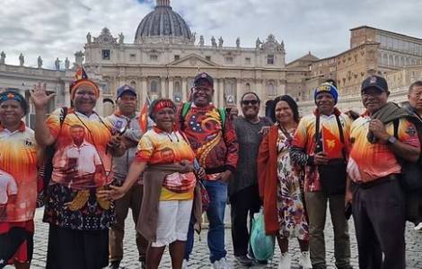 Rom (Fides) – „Schon als Kind habe ich verstanden, dass mein Leben mit Peter To Rot verbunden war. Als ich mich in den 60er Jahren in der ersten Klasse der Pfarrschule einschrieb, erzählte mir der Pfarrer, ein deutscher Ordensmann der Missionare vom Heiligen Herzen Jesu (MSC), dass Josef Tatamai, mein Großvater, der ältere Bruder von Petro To Rot war”, berichtet der heutige Erzbischof von Rabaul und Urenkel des Heiligen, der gestern auf dem Petersplatz von Papst Leo XIV. zusammen mit sechs weiteren Heiligen heiliggesprochen wurde, Rochus Tatamai (MSC).