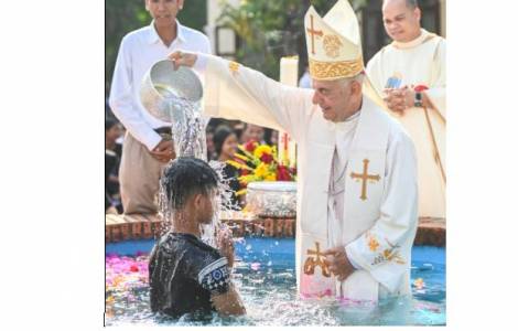 Kambodschas kleine katholische Gemeinde (insgesamt 20.000 Mitglieder, 0,15 % der überwiegend buddhistischen Bevölkerung) feiert traditionell am Ostersonntag Taufen – ein Tag großer Freude für die neuen „Kinder Gottes“. In der Hauptstadt Phnom Penh taufte Bischof Olivier Schmitthaeusler, Apostolischer Vikar, in der Osternacht in der Kirche Unserer Lieben Frau vom Lächeln in Chamkar, Provinz Takeo, 152 Katechumenen. Die Apostolische Präfektur Kampong Cham verzeichnete 131 Taufen an Ostern, womit sich Gesamtzahl der zu Ostern getauften Kambodschaner (darunter Kinder, hauptsächlich aber Jugendliche und Erwachsene) auf 375 beläuft.