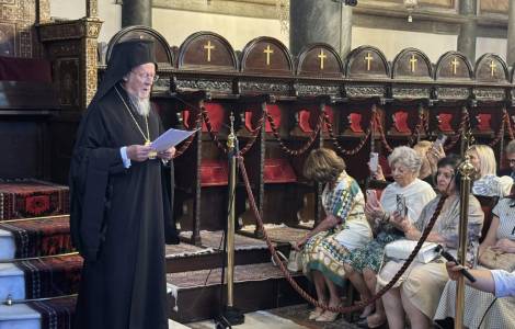 Istanbul (Agenzia Fides) - Christian unity is based on shared baptism. It is not uniformity, and it draws from the source of the one truth to be shared, that of the Gospel. With these words, the Ecumenical Patriarch of Constantinople, Bartholomew I, welcomed on Sunday, July 20, a group of Catholic and Orthodox pilgrims heading to Nicaea (modern-day Iznik), led by Orthodox Archbishop Elpidophoros of America and Cardinal Joseph Tobin, Archbishop of Newark, at the Church of St. George in Fanar, the seat of the Ecumenical Patriarchate. In his address to the participants of the ecumenical pilgrimage, the “Primus inter pares” among the Primates of the Orthodox Churches also expressed strong words regarding the recent attack by the Israeli army on the Catholic parish of the Holy Family in Gaza City.