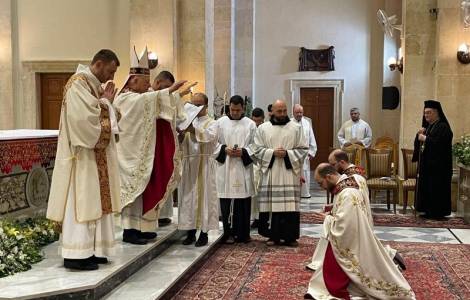 تلقى الشمامسة، الأخ جورج باولو والأخ جوني جالوف، رسامة كهنوتية في كنيسة القديس فرنسيس الأسيزي في حلب من خلال وضع الأيدي من قبل الاسقف حنا جلوف، النائب الرسولي للاتين في حلب. فالاسقف عمّ الكاهنين الجديدين وإحدى الدعوات المقدسة العديدة التي أعطتها سوريا لحراسة الأراضي المقدسة: ليكن تفانيه الكامل للمسيح وللكنيسة مثالا لهؤلاء الشباب ولنا جميعا. قام الأب حنا، الذي سيحتفل بعامه الأول كنائب رسولي في حلب في 17 أيلول/سبتمبر، بتكريس كاهنين جديدين لأول مرة بفرح لرؤية أبناء أخيه يصبحون جزءا من رهبانية الفرنسيسكان وحراسة الأراضي المقدسة.