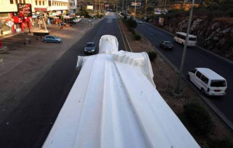 Um den Transport der 27 Meter großen und 40 Tonnen schweren Statue zu ermöglichen mussten Abschnitte der Autobahn nach Faraya gesperrt werden.