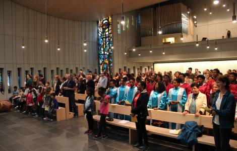 Wie bereits Pater Skoda sprach auch Weihbischof Thomas Marie Renz in seiner Predigt bei der gemeinsamen Eucharistiefeier, über biblische Texte als Quelle der Inspiration für ein christliches Leben. In der ganze Bibel seien das Warten auf die wahre Heimat und das Versprechen des gesegneten Landes der Rahmen des des christlichen Glaubens und des christlichen Wegs. Deshalb seien alle Menschen Pilger auf dieser Erde auf dem Weg zu einer Heimat, so der Bischof. Dies helfe dabei, dass man sich nicht gegenüber den Weggefährten verschließe und oberflächliche Visionen vom Menschen überwindet und erkennt, dass die wahre Kenntnis des Anderen darin besteht, dass wir unsere Leben teilen und zwar soweit, dass wir unser Leben für die Liebe hingeben und uns umeinander kümmern. Das Scalabrini-Fest 2017 bot Gelegenehit einen Vorgeschmack auf diese gegenseitige Annahme zu bekommen, angefangen bei der Gemeinschaft zwischen verschidenen Sprachen, Kulturen und Altersgruppen, die bei der Begegnung vertreten waren.