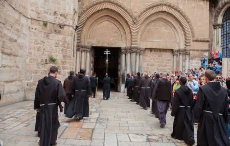 Jerusalem (Fides) – “Für uns Franziskaner sind diese acht Jahrhunderte Ausdruck der göttlichen Vorhersehung, der Treue und der Güte Gottes uns gegenüber, weil er uns als einfaches und armes, vielfältiges und oft ungeordnetes kirchliches Instrument gewählt hat, um hier nicht in unserer, sondern in seiner Geschichte voranzuschreiten, die eine Heilsgeschichte ist”, so der Kustos der Franziskaner im Heiligen Land, Pater Francesco Patton, anlässlich der Feiern zum 800jährigen Jubiläum der Präsenz der Franziskaner im Nahen Osten.