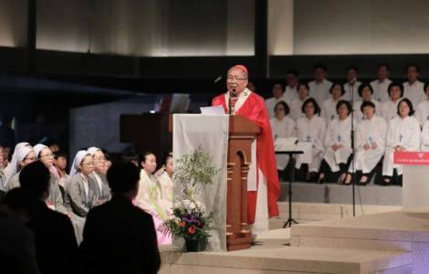 Seoul (Fides) - „Ich glaube, dass die heutige Würdigung der koreanischen Wallfahrtsorte in Seoul als internationale Pilgerstätte durch den Heiligen Stuhl ein Meilenstein für die Kirchen in Asien sein wird. Diese Pilgerwege spielen eine Schlüsselrolle bei der Integration der koreanischen Kultur und Kirche auf internationaler Ebene“, so Kardinal Andrew Yeom Soo-jung, Erzbischof von Seoul, während eines Gottesdienstes am vergangenen 14. September im Heiligtum der Märtyrer von Seosomun zur offiziellen der katholischen Pilgerwege in Seoul durch den Vatikan. Wie die Pressestelle der Erzdiözese berichtete, nahm an dem Gottesdienst auch Erzbischof Rino Fisichella, Präsident des Päpstlichen Rates zur Förderung der Neuevangelisierung teil sowie und rund 1.500 Gläubige und engagierte Katholiken. Die Zivilbehörden waren durch Do Jong-hwan, Minister für Kultur, Sport und Tourismus, und Park Won-bald, Bürgermeister von Seoul, vertreten.