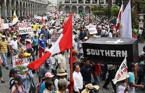 Arequipa (Fides) – „Der Vorsitzende der peruanischen Bischofskonferenz antwortet auf die durch das „Projekt Tia Maria“ ausgelösten Reaktionen, indem er seine Besorgnis über die möglichen Folgen der derzeitigen Lage zum Ausdruck bringt ebenso wie seine Hoffnung darauf, dass mit ein angemessenen Dialog ein neuer Sozialkonflikt vermieden werden könne. In diesem Zusammenhang teilen wir die Erklärungen der Nationalversammlung der Regionalregierungen und anderer Teile der Gesellschaft , die darum gebeten hatten, dass der Dialog in Tia Maria stattfinde, bevor jegliche Aktion seitens der Mine erfolge“. Das ist das dringlihe Comunique, das am 12. Juli vom Vorsitz der Peruanischen Bischofskonferenz unterzeichnet und an Fides gesandt wurde; es geht dabei um die Ereignisse der letzten Tage in der Gegen von Arequipa (ca 800 km südlich von der peruanischen Hauptstadt). Am 9. Juli hat die Regierung – nach einem zehn Jahre andauernden Verwaltungs,-Umwelt – und Sozialkonflikt – Southern Copper Corporation (SCC) die Erlaubnis für die Kupferförderung bewilligt.