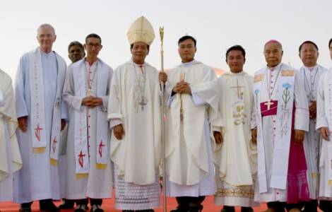 Yangon (Fides) - Die katholische Kirche in Myanmar feiert den von Papst Franziskus für den Oktober 2019 ausgerufenen außerordentlichen Monat der Weltmission mit einem besonderen Ereignis, das eine missionarische Dimension annimmt: der Priesterweihe neuer Priester und Ordensleute im Land. Drei Jesuiten aus Myanmar, Cyril Phocho Nay Myo Htet, Pius Than Naing Lin und Joseph Zau Gun wurden bereits am 21. September zusammen mit sechs Diözesanpriestern aus Yangon in der Marien-Kathedrale in Yangon, der Hauptstadt von Myanmar, zum Priester geweiht und sind seither als "Missionare" in ihrem eigenen Land tätig, in Gebieten, in denen es Konflikte gibt oder in denen Armut und Not herrschen.