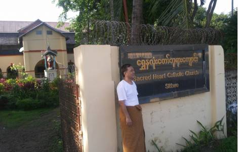 Doch Pfarrer Michael ist nicht allein: Es gibt drei Schwestern der „Religieuses de Notre Dame des Missions”, die 1861 in Frankreich in Lyon von an Adèle Euphrasie Barbier gegründet wurden. Sie betreuen 35 Mädchen in den Räumlichkeiten neben der Kirche. Es sind Mädchen aus dem Stamm der Kinn und die Besonderheit des Staates Rakhine, für die Diözese Pyay der Kirchenprovinz Yangon, zuständig ist besteht darin, dass praktisch alle Katholiken des Staates chinesischen Ursprungs sind. Pfarrer Michael kommt selbst aus Pyay und ist seit drei Jahren hier. Sittwe, ist ein wichtiger katholischere Bezugspunkt in diesem Teil von Myanmar, und auch Priester aus Paletwa komen zur geistlichen Einkehr. "Wir versuchen mit der Armee zusammenzuarbeiten und versuchen, ihnen zumindest Lebensmittel und Medikamente zu besorgen. Die Caritas Pyay (die katholische Diözese, die das gesamte Gebiet des Stasta Rakhine umfasst) hilft ebenfalls." Aber der Weg ist steil und dieser Teil des Landes bleibt ein Ort immenser Not . Direkt vor der Herz-Jesu-Kirche befindet sich das Gefängnis von Sittwe- Die meisten Gefangenen sind Muslime.