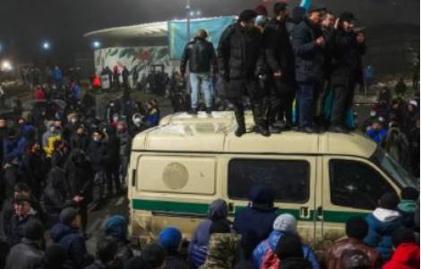 Die jüngsten Unruhen begannen in den frühen Morgenstunden des 5. Januar und betraf mehrere kasachische Städte, sein Epizentrum war jedoch Almaty, die Finanzhauptstadt im Sücen Kasachstans. Dutzende von Demonstranten wurden bei den Zusammenstößen verletzt oder getötet, 18 Polizeibeamte verloren ihr Leben und mehr als 2.000 Menschen wurden festgenommen. Einige Demonstranten besetzten und plünderten Fernsehstationen und Flughäfen, was zur Aussetzung von Flugverbindungen führte.