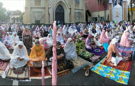 Jakarta (Fides) – Im Zeichen der Solidarität mit den muslimischen Gläubigen stellen christliche Gemeinden in Indonesien am heutigen 2. Mai zum Ende des muslimischen Fastenmonats Ramadan die eigenen Parkplätze und Freiflächen für die Feiern des Eid-al Fitr-Festes zur Verfügung bei denen sich muslimische Gläubige zum Ende des Fastenmonats Ramadan zum Morgengebet in der Moschee versammeln. Dies geschah zum Beispiel auf dem Gelände der Kathedrale von Jakarta, die sich direkt gegenüber der großen Moschee befindet, während in der Herz-Jesu-Gemeinde von Malang im östlichen Java, wo die Christen den muslimischen Gläubigen in der Großen Jami-Moschee gute Wünsche übermittelten.
