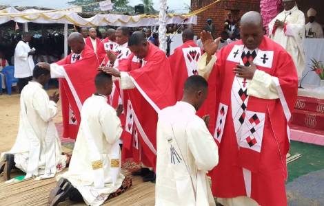 Boma (Fides) - "Die Kirche, für die wir uns engagieren und der wir dienen wollen, ist wie eine Herberge Christi; ein Ort der Gastfreundschaft, der Heilung und der Gemeinschaft. Hütet euch davor, sie zu einer Herberge für Räuber und Diebe zu machen, die das Volk Gottes, eure Brüder und Schwestern, ausrauben, erpressen, ausbeuten, misshandeln und verletzen, während ihr diesen Brüdern und Schwestern nahe sein müsst“, so Bischof José-Claude Mbimbi von Boma, zu den drei Priestern und neun Diakonen, denen er am Sonntag, den 10. Juli 2022, in Kangu (Nordwesten der Zentralprovinz Kongo, Demokratische Republik Kongo) die Weihe erteilte.