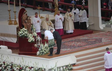 Und wie man das Werk Jesu in der Welt fortführen, jedes Werk der Barmherzigkeit zu einem Widerschein der Liebe Gottes machen kann, erläuterte der Papst abschließend am Beispiel der neuen Heiligen: „Im Laufe der bewegten Geschichte der Menschheit waren sie treue Diener, Männer und Frauen, die im Martyrium und in der Freude dienten, wie Bruder Manuel Ruiz Lopez und seine Gefährten. Es sind Priester und gottgeweihte Frauen, die vor missionarischer Leidenschaft glühen, wie Don Giuseppe Allamano, Schwester Marie-Léonie Paradis und Schwester Elena Guerra. Diese neuen Heiligen haben den Stil Jesu gelebt: den Dienst. Der Glaube und das Apostolat, das sie vorangebracht haben, hat in ihnen keine weltlichen Begierden und Machtgelüste geweckt, sondern sie haben sich im Gegenteil zu Dienern ihrer Brüder und Schwestern gemacht und waren kreativ darin, das Gute zu tun, sie waren standhaft in Schwierigkeiten und großherzig bis zum Ende.“