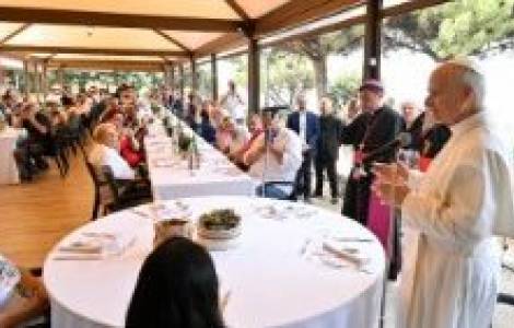 Anschließend dankte der Bischof von Rom „gemeinsam mit dem Bischof von Albano Laziale, Vincenzo Vita, und allen, die ihr euch in der Diözese bemüht, das Feuer der Nächstenliebe zu tragen“, und ermutigte sie, „ zwischen denen, die helfen, und denen, denen geholfen wird, zwischen denen, die zu geben scheinen, und denen, die zu empfangen scheinen, zwischen denen, die arm erscheinen, und denen, die Zeit, Fähigkeiten und Hilfe anzubieten haben“. „Wir sind die Kirche des Herrn, eine Kirche der Armen“, erinnerte der Papst, „alle wertvoll, alle sind Subjekte, jeder ein Träger eines einzigartigen Wortes Gottes“. Und die Kirche ist „ein einziger Leib, an dem auch der Schwächste mit voller Würde teilhat“. Dies geschieht, so der Papst weiter, „wenn das Feuer, das Jesus bringen wollte, die Vorurteile, Vorsichtsmaßnahmen und die Ängste verbrennt, die noch jene ausgrenzen, die die Armut Christi in ihrer eigenen Geschichte eingeschrieben tragen“. „Schließen wir den Herrn nicht aus, aus unseren Kirchen, unseren Wohnungen, unserem Leben. Lassen wir ihn vielmehr in den Armen eintreten, dann werden wir auch mit unserer eigenen Armut Frieden schließen, die wir fürchten und leugnen, wenn wir um jeden Preis Ruhe und Sicherheit suchen”.