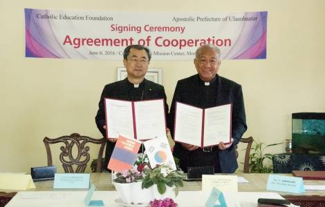 Ulaanbaatar (Agenzia Fides) - The Apostolic Prefecture of Ulaanbaatar and the Korean Archdiocese in Seoul have signed an agreement to improve missionary cooperation and promote the development of the Church in Mongolia. As Fides learns, the Memorandum of Understanding was signed in Ulaanbaatar on June 6 between the Catholic Education Foundation of the Archdiocese, represented by the Auxiliary Bishop of Seoul Benedict Son Hee-Song, and the Apostolic Prefecture, represented by Bishop Wenceslao Padilla, and includes points like the activity of evangelization, priestly formation, financial support.