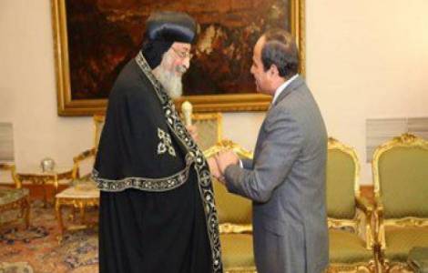 Cairo (Agenzia Fides) – The citizens of Egypt whatever their religious community, “have equal rights and duties as established by the Constitution ”. Egypt’s Christians have demonstrated “wisdom and a spirit of patriotism ” in reply to the sufferings and provocation inflicted on them in recent years, remaining united in front of those who “try to exploit religion as a means of fomenting division and spreading extremist ideas”. These essential considerations were expressed by the President of Egypt Abdel Fattah al Sisi when he received the visit of Copt Orthodox Patriarch Tawadros II, at the presidential palace with a delegation including several Bishops of the Copt Orthodox Synod of Bishops. Sisi emphasised the value of brotherhood between Christians and Muslims in Egypt, and expressed appreciation for initiatives undertaken by the Egyptian Family House a body for interreligious cooperation formed some years ago to prevent and mitigate sectarian clashes.