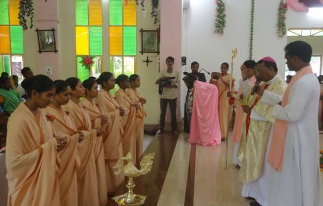 Bhubaneswar (Agenzia Fides) - The Catholic community in the Indian state of Orissa (or Odisha), which has suffered violence and massacres in recent years, is not discouraged and generates new vocations to consecrated life: yesterday, October 2 , was a memorable day for Sister Rebika Pradhan and Sister Anjali Singh, from the community of Kandhamal district, Orissa, who took their final profession of vows at St. Vincent's Church in Bhubaneswar, along with other 5 Sisters of St. Joseph of Annecy, who come from the states of Orissa, Andhra Pradesh and Telengana. The official ceremony was presided by the Bishop of Berhampur, Mgr. Sarat Chandra Nayak. For the occasion there were 30 priests, 35 sisters and 2,000 faithful.