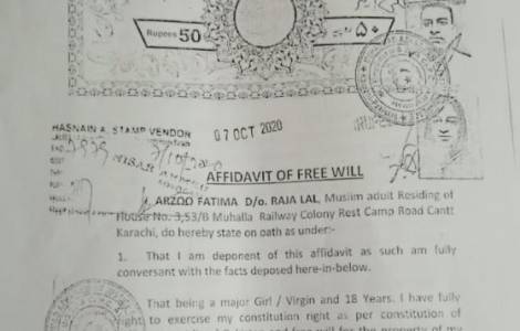 In fact, the police dismissed the case because, on the evening of October 14, the kidnapper's lawyer appeared at the police station, presenting the documents that, according to him, would grant full legitimacy to the abductor: an "Affidavit", signed by Arzoo, who attests her free will for her conversion to Islam and for marriage; a "certificate of conversion to Islam" and a marriage certificate. The girl's parents were unable to do anything, even though they provided the girl's birth certificate and referred to the law that prohibits marriage under 18 years of age (according to Islamic law, it si allowed).