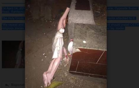 Mumbai (Agenzia Fides) - With an act of vandalism, the monument of Christ Crucified located in front of Pavan Hans, in the west of Mumbai, capital of the Indian state of Maharastra, was intentionally damaged by unknown persons. "We are horrified by the umpteenth act of contempt and gratuitous violence against Christians. Religious minorities in this city, especially Christians, are subjected to constant harassment because their places of worship are regularly targeted and subjected to vandalism", said to Fides Nicholas Almeida, Catholic lay leader of the archdiocese of Bombay, member of the NGO "Watchdog Foundation".