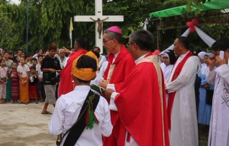 The first traces of faith in the Banmaw area date back to the mid-19th century, with a much-loved missionary bishop, Paul Ambrose Bigandet MEP. The bishop then sent the first French missionaries to the Banmaw area, where they came into contact with the animist Kachin people and began missionary work. Between 1872 and 1939, 31 French priests served the population of the Banmaw area, along with some catechists. In 1936, the Irish missionaries of Saint Columban arrived, reinvigorating evangelization. In 1939, the Holy See officially established the Apostolic Prefecture of Banmaw. After being interrupted by World War II, with the resumption of apostolic activities in 1961, the Apostolic Prefecture became the Diocese of Myitkyina. Banmaw was part of the Diocese of Myitkyina until 2006, when Pope Benedict XVI created the new Diocese of Banmaw, a suffragan of the Archdiocese of Mandalay, appointing Monsignor Raymond Sumlut Gam as the diocese's first bishop. (PA) (Agenzia Fides, 20/3/2025)