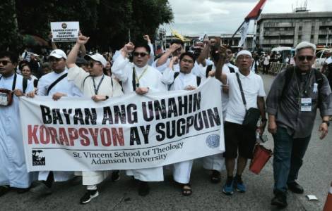 Manila (Agenzia Fides) – "The campaign, carried out by a movement against corruption, is not political. Rather, it concerns a moral issue, which is why Catholic representatives and institutions are at the forefront: because of the moral and spiritual value of the protest, which originates from indignation, calls for conversion of heart, and promotes the true common good," Msgr. Colin Bagaforo, Bishop of Kidapawan, told Fides. The bishop was present at the demonstration on September 21, which brought over 100,000 people to the streets of Manila, while rallies and demonstrations against corruption also took place in other Philippine cities. The bishop is one of the members of the "Church Leaders Council for National Transformation" forum, which brings together over 200 movements, associations, unions, political groups, civil society organizations, and universities in Philippine society, which have called for participation. The protest arose due to the embezzlement of funds intended for infrastructure projects to prevent and mitigate climate disasters and extreme events such as typhoons, which are currently ravaging the country and have already caused over 100,000 internally displaced persons. Two symbols represent the protests: the crocodile and a white ribbon. "The crocodile," Bishop Bagaforo explained to Fides, "is an animal that devours everything, even its own children. In this case, the crocodiles are the politicians and businessmen who are devouring the future of young Filipinos by stealing funds intended for development and protection. The second symbol is a white ribbon, which those present wore with a cockade on their clothing to highlight the urgency of transparency, purity, and also hope for a better future." Bishop Bagaforo adds: "The Church's presence in this time of popular protest is also conditioned by the need for synodality: We felt called to stand alongside vulnerable people, those who have been betrayed, and those deprived of their fundamental rights. We want to share their joys and sufferings and raise our voices for those who have no voice or are afraid, to demand clarification of responsibilities, transparency, and justice."