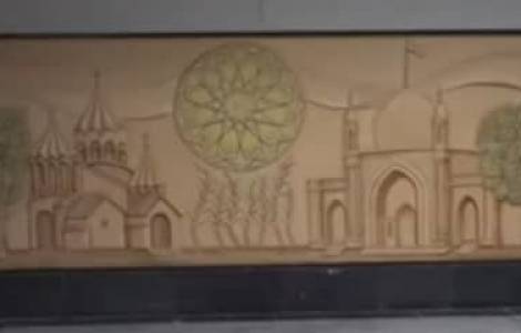 Reliefs combining architecture, Christian and Muslim symbolism, floral art and Persian poetry are located at the height of the access ramps to the underground trains.