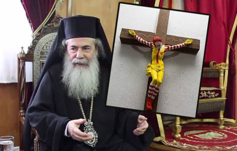 Jerusalén (Agencia Fides) - Los Patriarcas y los Jefes de iglesias y comunidades cristianas han firmado y hecho público un comunicado conjunto para denunciar las infames y provocativas imágenes que se exhiben en una exposición en el Museo de Arte de Haifa, bajo el patrocinio de las autoridades israelíes. La obra que ha provocado más controversia e indignación entre la población cristiana (que la semana pasada emprendió protestas que se saldaron con enfrentamientos con la policía), representa a Ronald McDonald, el payaso emblema de la cadena de comida rápida McDonald's, crucificado en una cruz de madera como Jesús. La obra, esculpida por la artista finlandesa Janei Leinonen, forma parte de la exposición “Sacred Goods”.