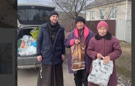 Konotop (Agencia Fides) – “En medio del sufrimiento, del malestar, de la guerra, nosotros, frailes franciscanos de la Provincia de San Miguel Arcángel, continuamos sirviendo a las personas más pobres y sufrientes de la ciudad de Konotop con una población de 80.000 habitantes y sus alrededores”, dice en un mensaje enviado a la Agencia Fides Fray Romualdo Zagurskyi OFM, fraile menor en la ciudad de Konotop, en el noroeste de Ucrania. “Nuestra jornada – observa – comienza con la acogida de las personas que se han confiado a nosotros en el refugio del sótano del convento. Luego, con los voluntarios, hacemos cola durante horas en las farmacias para comprar medicamentos, y en las tiendas de comestibles para comprar pan y leche, recibiendo decenas de peticiones de ayuda, a pesar de las señalaciones de posibles bombardeos”.