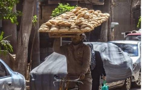 «La tesela beige representa las grandes bandejas de pan que los jóvenes balancean sobre sus cabezas mientras montan en bicicleta. El pan, un alimento básico y asequible, llega a los mercados y hogares, a menudo desafiando las leyes de la física mientras lo transportan y lo depositan en las cestas que bajan desde los pisos altos».