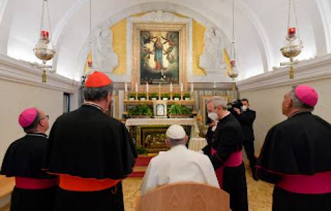 La vie de l'Église, a poursuivi le Pape François, n'est jamais seulement "une histoire passée dont il faut se souvenir". Et il n'est pas appelé à censurer un quelconque fait de la réalité. La crise de la foi, l'apathie des pratiques croyantes, surtout après l'épidémie, et l'indifférence de tant de jeunes à la présence de Dieu, a fait remarquer le Souverain Pontife, ne sont pas des sujets que nous devons "adoucir". Face même à la perte de la mémoire chrétienne, on ne peut pas faire confiance aux projets de réévangélisation ou aux cours de formation. Le temps présent, a insisté l'évêque de Rome, est aussi le temps où il vaut mieux revenir au début, à la croix, à la première communauté chrétienne. Afin d'être une Église qui se soucie de l'amitié avec Jésus et de la proclamation de son Évangile, et non de la recherche d'espace et d'attention". Et sur ce chemin, a suggéré le Pape, il y a une sorte de "test décisif" utile pour vérifier "à quel point l'Eglise est imprégnée de l'esprit de l’Évangile" : c'est le souci de l'accueil réciproque, "non pas par pure formalité mais au nom du Christ", sur le modèle de l'image de Marie et de l'Apôtre Jean qui se sont confiés l'un à l'autre au pied de la croix, en acceptant les dernières paroles que le Christ lui-même leur a adressées. " Marie et Jean ", a noté le Pape, en regardant les tragédies humaines collectives du moment présent à la lumière de l'Évangile, " se sont accueillis non pas dans le refuge chaleureux du Cénacle, mais à la croix, dans ce lieu obscur où ils ont été condamnés et crucifiés comme des malfaiteurs ". Et nous aussi, nous ne pouvons pas nous accueillir seulement entre nous, à l'ombre de nos belles églises, alors qu'à l'extérieur tant de frères et sœurs souffrent et sont crucifiés par la douleur, la misère, la pauvreté et la violence". (GV) (Agence Fides 4/4/2022)