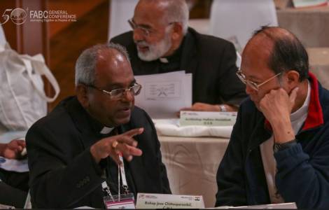 Bangkok (Agence Fides) - Dans un continent qui souffre de trois " fractures " : la fracture sociale (social), la fracture spirituelle (spiritual divide) entre soi et les autres ; la fracture écologique (ecological divide), entre l'homme et la Création, les évêques d'Asie se laissent interpeller sur la manière de combler ces fossés et, dans cet esprit, ils s'écoutent les uns les autres, pour apprendre les uns des autres. "Pour ce faire, il faut avoir un esprit, un cœur et une volonté ouverts à la volonté de Dieu", a déclaré le cardinal Oswald Gracias, Archevêque de Bombay (Inde), alors que les travaux de l'Assemblée de la Fédération des conférences épiscopales d'Asie (FABC), qui s'est réunie à Bangkok du 12 au 30 octobre pour célébrer son 50e anniversaire, entrent dans leur dernière semaine.