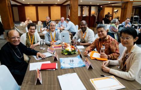 Bangkok (Agence Fides) - Les communautés catholiques d'Asie sont appelées à " élargir l'espace de leur tente", à l'étendre aux nécessiteux, aux marginaux, à tous ceux, même non croyants, qui ont besoin et attendent l'annonce de l'amour et du salut de Jésus-Christ. Telle est la perspective qui s'est dégagée de l'Assemblée des délégués asiatiques pour le Synode sur la Synodalité, qui s'est achevée aujourd'hui, 27 février, à Bangkok (voir Fides 24/2/2023). Au cours de cette rencontre, qui a réuni les délégués représentant les 29 pays qui composent la Fédération des Conférences épiscopales d'Asie (FABC), les participants n'ont pas hésité, dans la plus grande liberté intérieure, à aborder, discuter et approfondir des thèmes délicats et potentiellement porteurs de tensions, tels que le rapport entre évêques et prêtres, le rapport entre les structures ecclésiales et les jeunes, le rôle des femmes, l'attention aux pauvres. Mais "tous les obstacles ou difficultés sont en fait des lieux où l'Esprit se déplace, se manifeste et donne une grâce que nous recevons", a souligné le cardinal Charles Maung Bo, archevêque de Yangon et président de la FABC, lors de l'eucharistie de clôture célébrée ce matin.