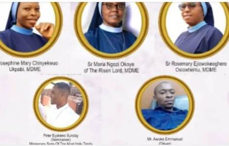 Abuja (Agence Fides) - "C'est avec gratitude envers le Seigneur que nous annonçons avec joie la libération de nos trois sœurs, du séminariste et du chauffeur enlevés ces derniers jours". C'est ainsi que Sœur Gloria Nnabuchi, vicaire générale des Filles Missionnaires de Mater Ecclesiae, a annoncé la libération des trois sœurs enlevées le 5 octobre dernier avec un séminariste et leur chauffeur (voir Fides 9/10/2023) alors qu'elles se rendaient à Mbano pour assister aux funérailles de la mère de l'une d'entre elles.