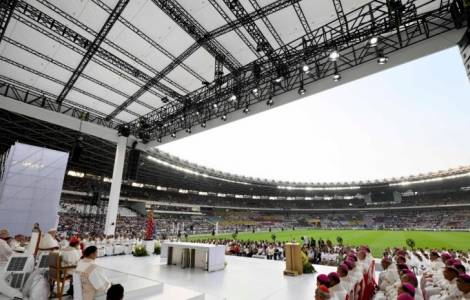 Jakarta (Agence Fides) - La première étape du long voyage apostolique du Pape François en Asie et en Océanie s'est achevée par la messe au stade « Gelora Bung Karno » de Jakarta. À 16 heures, heure locale (11 heures, heure de Rome), après avoir quitté la Nonciature apostolique, le Souverain Pontife s'est rendu à l'installation sportive située au cœur de la capitale indonésienne. Accueilli par des applaudissements nourris, il a fait quelques tours en papamobile, distribuant des sourires et bénissant des bébés et des enfants. Vêtu des habits sacrés, François a présidé la célébration eucharistique en mémoire de Sainte Thérèse de Calcutta. À la fin, après un discours d'hommage de l'archevêque métropolitain de Jakarta, le cardinal Ignatius Suharyo Hardjoatmodjo, et avant la bénédiction finale, le Pape a adressé un dernier salut et quelques mots de remerciement aux fidèles et aux pèlerins présents. Il est ensuite retourné en voiture à la Nonciature apostolique. Demain, il quittera l'Indonésie pour se rendre à Port Moresby, capitale de la Papouasie-Nouvelle-Guinée. Voici les passages marquants de son homélie :
