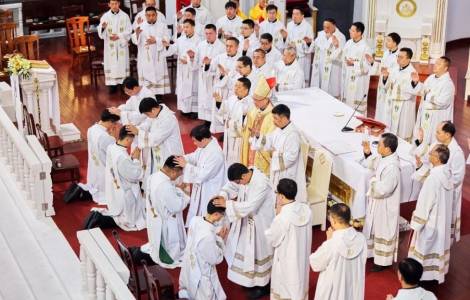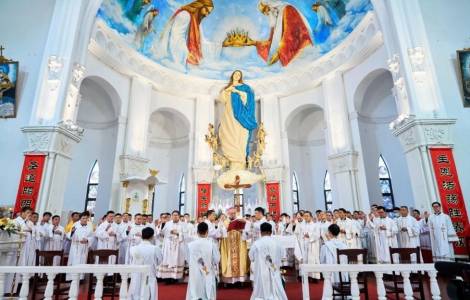 Ningbo (Agence Fides) – La petite Diocèse de Ningbo, dans la province chinoise du Zhejiang, a accueilli quatre nouveaux prêtres ordonnés le 25 mars, jour de la fête de l'Annonciation du Seigneur. Les prêtres diocésains - rapporte le site du diocèse - ont ensuite concélébré la liturgie avec Mgr Francesco Saverio Jin Yangke, évêque ordinaire du diocèse, dans la cathédrale dédiée à l'Assomption de Marie.