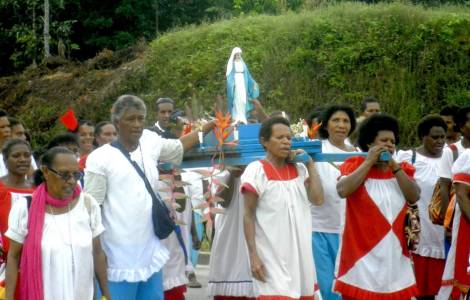 Daru-Kiunga (Agenzia Fides) - E' forte e profonda la devozione mariana nella diocesi di Daru-Kiunga,nella parte occidentale della Papua Nuova Guinea. Nella diocesi, suffraganea di quella di Port Moresby, vivono circa 50mila cattolici, su una popolazione di 220mila abitanti del territorio. Come appreso dall'Agenzia Fides, la "Legione di Maria" nella diocesi ha celebrato il suo 10° anniversario di presenza, confermando la profonda fede e devozione mariana dei suoi 500 membri. Il Vescovo Gilles Cote, che guida la comunità di Daru-Kiunga, ha partecipato agli eventi organizzati, accanto a p. Martin We-en, direttore di Radio Maria in Papua Nuova Guinea, a numerosi sacerdoti e religiosi, alla presenza dei membri della "Legione di Maria" che svolgono opera di apostolato nelle tre diocesi della regione meridionale (l'arcidiocesi di Port Moresby, la diocesi di Bereina e la diocesi di Daru-Kiunga). P. Martin, celebrando una Eucarestia, ha invitato i fedeli a "ascoltare, vedere e agire come Maria ha fatto, in nome di Dio". Il Vescovo ha tenuto un discorso elogiando "l'autentica devozione a Maria" e ricordando a ogni fedele il dono ricevuto nel Battesimo. Il Vescovo ha poi presieduto l'Eucaristia che ha concluso la manifestazione, incoraggiando i legionari a "vivere imitando la Vergine maria, obbediente e umile in tutte le cose".