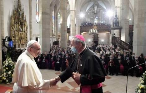 Bratislava (Agenzia Fides) – “Voglio raccontarvi un episodio: tempo fa, è arrivata la lettera di un vescovo. Parlando di un nunzio, scriveva: noi siamo stati 400 anni sotto i turchi, e abbiamo sofferto; poi abbiamo avuto 50 anni con il comunismo, e abbiamo sofferto; ma i sette anni sotto quel nunzio sono stati peggiori degli altri due periodi”. Il gustoso aneddoto è stato raccontato da Papa Francesco, in una delle aggiunte “a braccio” che il Pontefice ha inserito nel discorso pronunciato stamane, lunedì 13 settembre, nel secondo giorno della sua visita apostolica in Slovacchia. L’inciso ha suscitato ilarità tra quanti si erano raccolti nella Cattedrale di San Martino, a Bratislava, per prendere parte all’incontro del Papa con vescovi, sacerdoti, religiose, religiosi, seminaristi e catechisti della nazione centro-europea. “Quanti” ha aggiunto Papa Francesco “possono dire lo stesso del vescovo o del parroco? Senza libertà, la cosa non va”