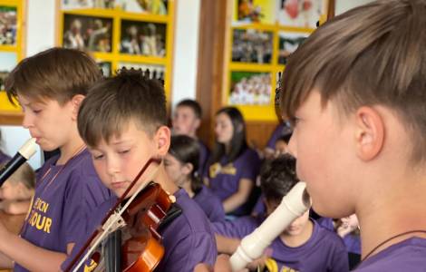 La settimana successiva ottanta tra bambini e ragazzi hanno continuato la formazione nella Casa “San Giuseppe” di Odorheiu Secuiesc, una città che si trova nel cuore della Transilvania. Lì le suore di rito greco-cattolico della congregazione del “Cuore Immacolato” ospitavano per le vacanze oltre 170 bambini orfani o provenienti da famiglie disagiate, dando loro vitto, alloggio e prendendosi cura della loro educazione. Il tema dell’incontro è ruotato intorno al messaggio del Santo Padre per il mese missionario, «Di me sarete testimoni» (At 1,8) che ha dato la possibilità ai bambini e ragazzi missionari provenienti da tutte le parti della Romania di prepararsi al meglio per le attività da svolgere nel mese di ottobre, condividendo le esperienze missionarie vissute con i coetanei nelle loro parrocchie da dove provengono e pregando insieme per le missioni della Chiesa Universale. Oltre alle sessioni di formazione missionarie e alla condivisione fraterna, i bambini hanno avuto l’opportunità di creare brani musicali ispirati al tema del mese missionario e di mettersi in gioco come musicisti, suonando diversi strumenti musicali e formando un’orchestra per animare le messe. Il terzo ed ultimo appuntamento si è svolto nella Repubblica Moldova, a Stăuceni, una piccola parrocchia che si trova nella diocesi di Chișinău. Don Daniel Medveș, il direttore diocesano delle POM e parroco della comunità, che lavora nella Repubblica Moldava da vent’anni, è riuscito a coinvolgere una quarantina di bambini e ragazzi, la maggioranza di confessione ortodossa, alcuni protestanti e altri romano-cattolici.