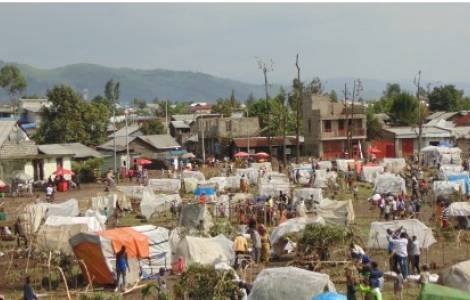 Goma (Agenzia Fides) - La recente ondata di violenza che ha colpito il Nord Kivu (vedi Agenzia Fides 9/2/2023) ha spinto decine di migliaia di persone a lasciare le proprie case in cerca di un riparo in diverse zone della regione. Tra queste il capoluogo Goma. da dove il missionario salesiano padre Piero Gavioli ha condiviso una sua testimonianza in merito alla grave emergenza che sta vivendo l’intera popolazione, in particolare gli sfollati. “I combattimenti del gruppo di milizie dell’M23 hanno bloccato i rifornimenti alla città su entrambi gli assi di approvvigionamento nord-ovest di Goma, e ha fatto sì che i tre campi da calcio del Centro Don Bosco Ngangi si sono riempiti di rifugi temporanei - racconta il missionario. Si tratta di circa 3.530 nuclei familiari, per un totale di 26.000 persone, tra cui 19.000 minori (10184 ragazze e 9043 ragazzi). Il sito di Ngangi non è un sito ufficiale, è quindi dimenticato dalle organizzazioni statali e parastatali.”