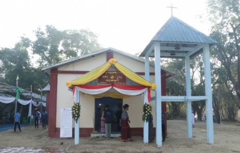 Yangon (Agenzia Fides) - E' una chiesa in cui sarà coltivata e promossa la devozione al Sacro Cuore di Gesù, una devozione che cresce in Myanmar, in un tempo segnato da guerra e sofferenza. Con grande gioia i fedeli dell'arcidiocesi di Yangon, città nel centro del Myanmar, hanno accolto l'apertura di una nuova parrocchia, che port il numero totale delle parrocchie dell'arcidiocesi a 53: si tratta della la chiesa cattolica del Sacro Cuore nel villaggio di Sauk Wain Gyi, consacrata e inaugurata a metà febbraio e affidata a don Leo Kyaw Win, primo parroco della nuova unità pastorale.