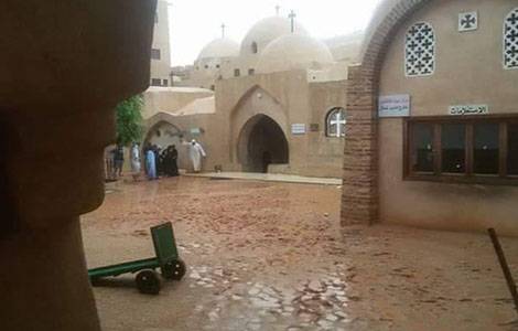 Cairo (Agência Fides) – As inundações provocadas nos dias passados pelas fortes chuvas que se abateram sobre a região de Wadi al Natrun provocaram prejuízos nos quatro históricos mosteiros coptas de Anba Bishoy, Al Suryan, Al Baramos e São Macário o Grande, cujas primeiras instalações remontam ao IV século depois de Cristo. Padre Boulos Halim, porta-voz da Igreja copta ortodoxa, referiu que as enchentes não provocaram vítimas entre os monges, mas causaram o desabamento de tetos e de muros, enquanto no mosteiro de Al Baramos as águas torrenciais inundaram o santuário que custodiava as relíquias de São Moisés o Etíope, que, no IV século cristão, de famoso guerreiro se tornou anacoreta, levando consigo ao mosteiro muitos membros do seu grupo de malfeitores.