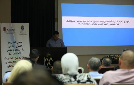 Caritas Jerusalém está ativa no âmbito da prevenção e do combate à droga com uma rede de iniciativas em vários campos. Desde 1999, funciona em Jerusalém Leste um Centro de escuta que assiste toxicômanos, com o envolvimento de suas famílias e comunidades de origem. Nas escolas e nas universidades, são organizadas sessões de informação e prevenção dirigidas a estudantes. Nos últimos anos, em colaboração com a Universidade de Belém e com a Academia Universitária militar Istqal de Jericó, ligada à Autoridade palestina, iniciaram-se cursos de formação que visam criar perfis profissionais – agentes sociais e médicos, psicólogos e enfermeiros – capazes de atuar na obra de prevenção e combate ao vício. “Este ano”, refere à Fides padre Abusahliah “foram emitidos 22 diplomas de cursos de formação reconhecidos pelo Ministério da educação palestino”. (GV) (Agência Fides 8/6/2016).