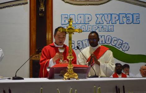 Ulaanbaatar (Agência Fides) – Uma profunda reflexão junto à cruz e um comovido relato sobre sua vocação: foi o que fez pe. Joseph Enkh celebrando sua primeira missa na Catedral dos Santos Pedro e Paulo em Ulaanbaatar, em 29 de agosto. Ordenado sacerdote domingo, 28 de agosto, pe. Joseph Enkh é o primeiro sacerdote nativo da Mongólia. “O evento foi recebido com muita alegria e orgulho, com muita gente reunida para receber este dom do céu”, conta à Fides o padre Prosper Mbumba, Cicm, missionário congolês na Mongólia.