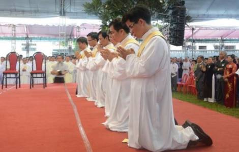 Ho Chi Minh City (Agência Fides) - Oito novos sacerdotes vietnamitas da Companhia de Jesus foram ordenados e já estão engajados há um mês no trabalho pastoral no país. A celebração de ordenação, realizada em 25 de agosto, em Ho Chi Minh City, foi presidida por Dom Joseph Tran Van Toan, Bispo auxiliar da Diocese de Long Xuyen, no júbilo de uma assembleia que incluiu muitos jesuítas, religiosos, religiosas e fiéis. Conforme relatado a Fides, a celebração foi centrada sobre o tema da "misericórdia", em sintonia com o Jubileu. Os novos sacerdotes, observou o Bispo, serão "verdadeiras testemunhas de Cristo, compartilhando a misericórdia de Deus para com seu povo".