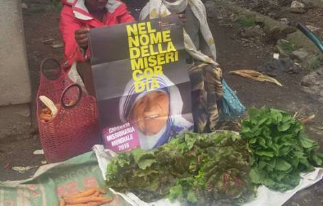 Adaba (Agência Fides) – “Está se tornando uma tradição o “mercado missionário” organizado pelos católicos da pequena comunidade de Adaba, na Etiópia, para coletar ofertas em favor dos missionários por ocasião do Dia Mundial das Missões (DMM)”. É o que conta à Agência Fides pe. Giuseppe Ghirelli, missionário diocesano fidei donum (veja Fides 11/12/2014). “Durante este mês de outubro - continua pe. Giuseppe -, os jovens missionários de Adaba rezaram pelos missionários e sábado de manhã, no mercado semanal, organizaram um banco de venda dos produtos da nossa horta para vende-los e destinar a arrecadação aos missionários. Este ano, foi dada atenção especial ao DMM dedicado ao tema do Ano Santo ‘Igreja missionária, testemunha da misericórdia’. Utilizei o slogan e a figura de Santa Teresa de Calcutá, que a Igreja italiana escolheu para o Dia de 2016 porque a jovem Igreja da Prefeitura Apostólica de Robe, aonde estou engajado já há dois anos, tem como Padroeira justamente Madre Teresa, que há cerca de 30 anos iniciou a presença católica na região de Bale abrindo pessoalmente uma casa na cidade de Goba, onde ainda hoje duas irmãs de Madre Teresa prestam serviço em favor dos mais pobres dentre os pobres. Hoje, na Santa Missa, celebramos o DMM e rezamos por todos os missionários”, conclui pe. Giuseppe.
