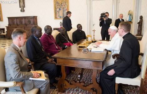 Juba (Agência Fides) - Papa Francisco recebeu em audiência ontem no Vaticano os principais líderes religiosos cristãos do Sudão do Sul: Dom Paulino Lukudu Loro, M.C.C.J., Arcebispo de Juba, o Rev. Daniel Deng Bul Yak, Arcebispo da Província da Igreja Episcopal do Sudão e do Sudão do Sul, e o Rev. Peter Gai Lual Marrow, Moderador da Igreja Presbiteriana no Sudão do Sul.