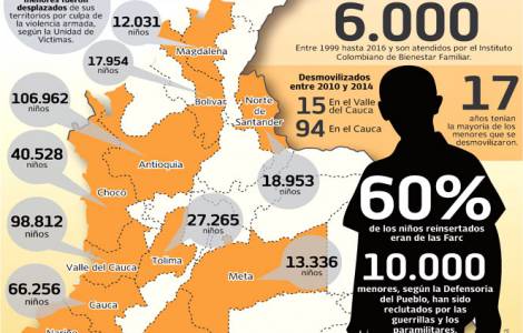 Dentre as áreas do país mais afetadas pela guerra, as populações do norte da região são historicamente as mais afetadas pelos atentados guerrilheiros. Nos dois departamentos de El Valle e Cauca foram registrados mais de 170 mil vítimas entre menores, a maior parte por sequestros, atentados terroristas, abuso sexual ou recrutamento. (AP) (15/11/2016 Agência Fides)