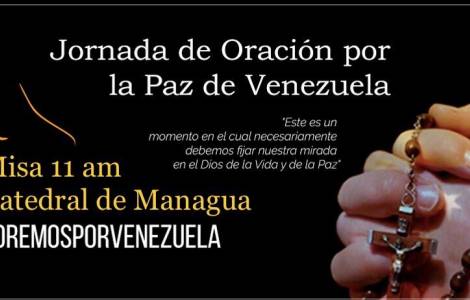 Manágua (Agência Fides) - "Em comunhão com os nossos irmãos bispos da Venezuela e em solidariedade com o amado povo desse país que vive uma situação tão dramática e dolorosa, os bispos da Nicarágua convidam você a participar da Eucaristia no domingo, 21 de maio, onde juntos vamos rezar pela Venezuela", são as palavras de Dom Silvio José Báez, bispo auxiliar de Manágua enviadas à Agência Fides.