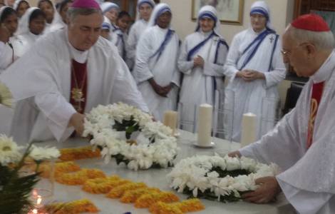 梵蒂冈城(信仰通讯社)—九月十五日,正在印度加尔各答进行牧灵访问的圣座万民福音传播部部长费尔南多•斐洛尼枢机在仁爱会创始人,真福德勒撒修女墓前主持了隆重弥撒圣祭。盛赞真福“将继续是人们爱天主、爱穷人的源泉;是光明与希望的灯塔;是所有人的朋友和代祷者。一如既往,也是最慈祥的母亲”。