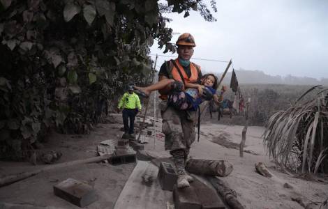 危地马拉城(信仰通讯社)—危地马拉火峰火山喷发后,重灾区埃斯昆特拉教区发表声明,呼吁教友们通过善度福音生活的具体行动帮助灾区人民。向火山喷发中的“遇难者、伤员及他们的家人、灾民表示最亲切的关怀和慰问。让全体灾民得到耶稣基督的天主内信仰的光照,因为天主是生命的天主、和平的天主”。据最新统计,火山喷发造成69人丧生、46人受伤、3,271人无家可归、170多万人受灾。