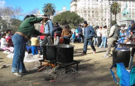 布宜诺斯艾利斯(信仰通讯社)—昨天九月十二日,阿根廷首都布宜诺斯艾利斯上演了特殊的一幕,数千人示威、邀请市民到“平民饭锅”活动的就餐点就餐。除了吃饭,还要象征性地抗议马克里总统领导的现政府。示威者纷纷要求政府停止抬高物价,特别是普通家庭基本生活用品的价格;宣布国家进入粮食紧急状态。
