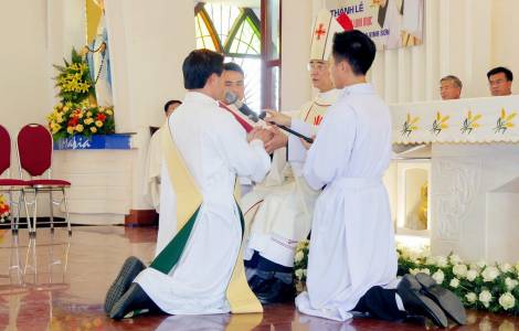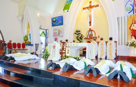 据越南省会向本社介绍,六月二十二日,大叻教区主教阮文孟在耶稣圣心堂,即省会会院所在地主持了8名遣使会执事晋铎的隆重仪式,一百多位会士和教区司铎参礼。晋铎仪式开始前,阮主教告诫大家“晋铎是神圣的庆典、是整个团体和教会的喜乐。因为司铎是天主赐予的恩典”。并叮嘱即将晋铎的圣召们牢记铎职的两大意义:与天主同在、与天主子民同在。指出“感谢耶稣的爱与宽容,圣伯多禄战胜了自己的弱点”。主教强调司铎作为人需要天主的恩宠,特别是在受到诱惑时。“只有因着天主的恩宠和祈祷,司铎才能恪守忠贞、保持警惕”。